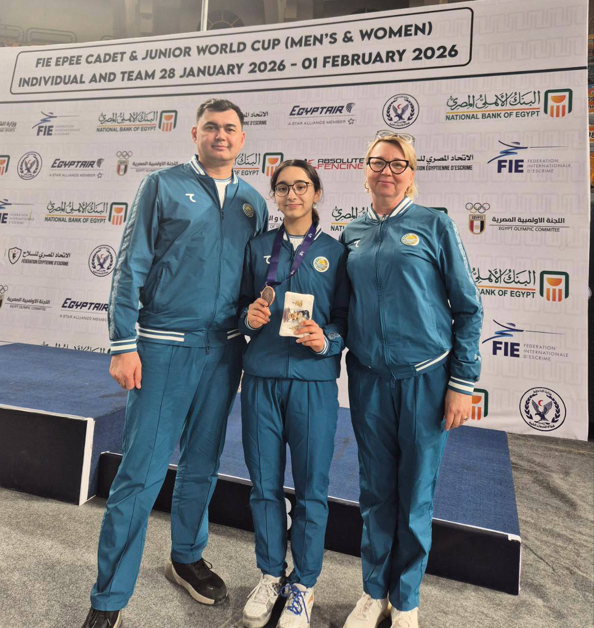 Назарова Санам завоевала бронзовую медаль на кадетском этапе Кубка мира по фехтованию на шпагах в Каире (Египет).