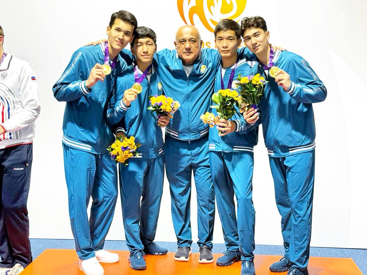 Сборная Узбекистана по сабле (Сардор Абдукаримбеков, Шанназар Абулов, Нурсултан Кенесбаев, Алпамис Уракбаев) в напряжённом финальном матче победила сборную России со счётом 45:43 и завоевала золотую медал!