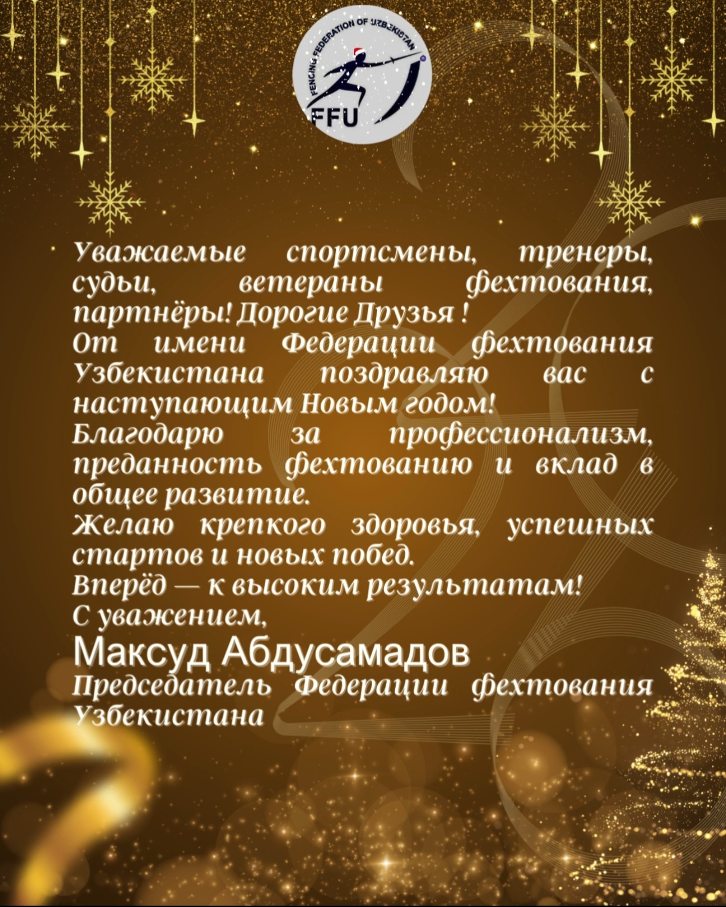 Поздравление С Наступающим Новым годом от Председателя Федерации фехтования Узбекистана.